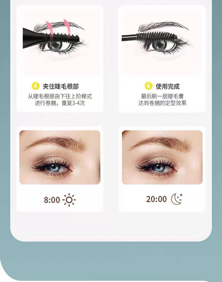 2. استفاده از دستگاه فرمژه برقی حرارتی: پس از انتخاب دما، کافی است دستگاه را به آرامی به مژهها نزدیک کرده و آن را از ریشه تا نوک مژهها به حرکت درآورید. این فرآیند را برای هر چشم تکرار کنید تا نتیجه مطلوب حاصل شود.