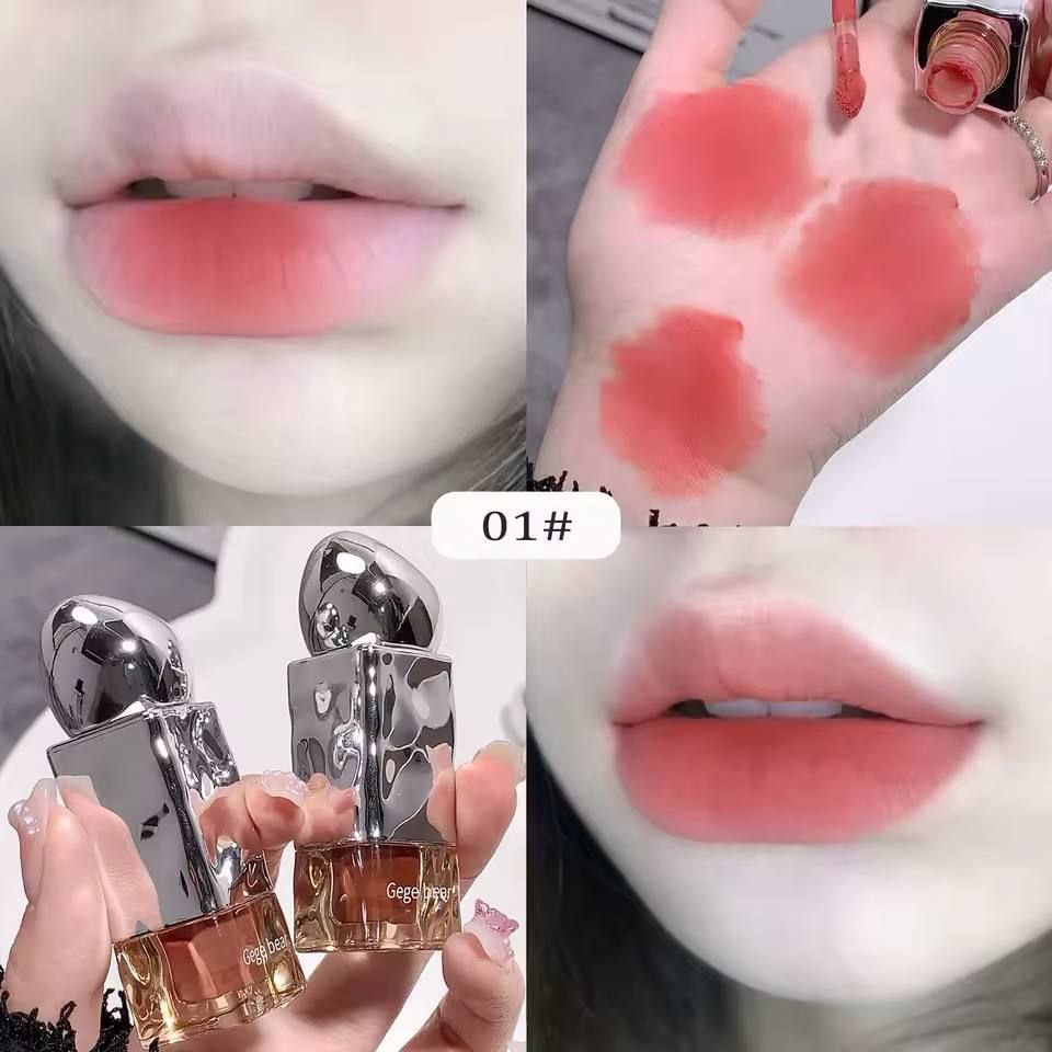 رژ خمیری آینه ای Gege bear 🩷 ۱۰۰درصد اورجینال✨️ این رژ آینه ای جذاب یه بافت مخملی و پودری داره و روی لب کاملا مخملی میشه🫦 نرم و سبک و رو لب حس نمیشه 😍