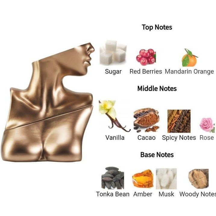 🍫رایحه میانی : وانیل ٬ کاکائو ٬ نت های تند ٬ گل سرخ